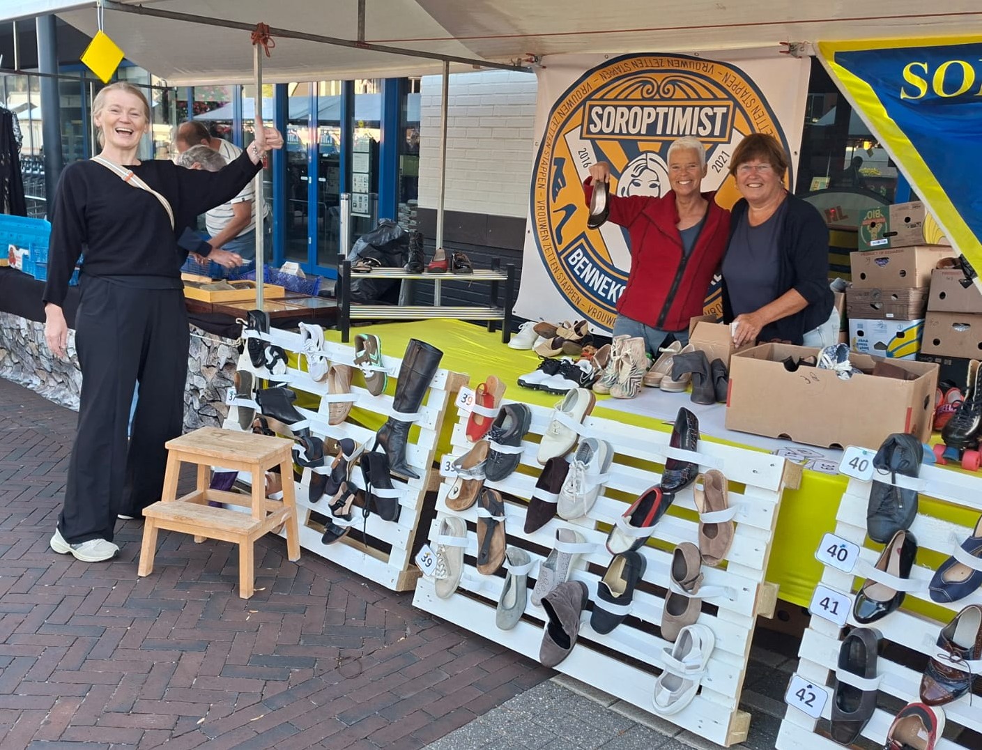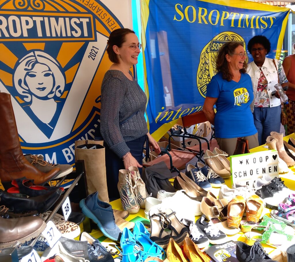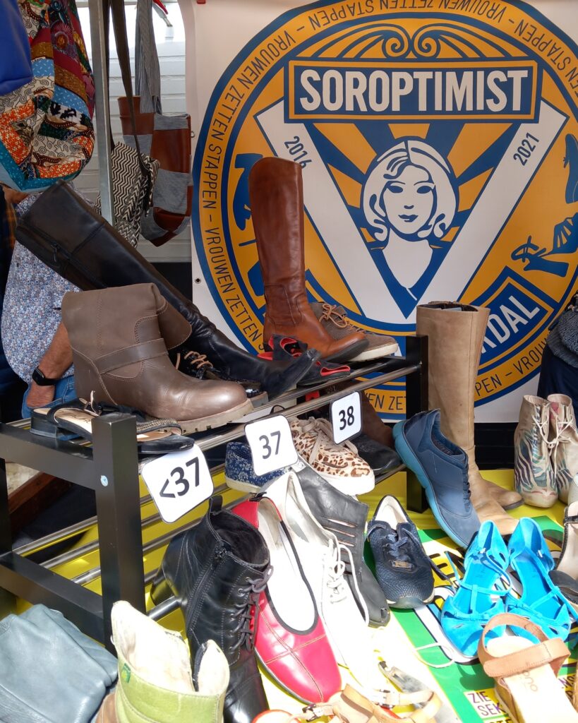 Gezelligheid staat altijd voorop tijdens de Heideweek in Bennekom. Op de Vlegeldag ’25 stonden er zo’n honderd kramen op de markt. Wij Soroptimisten brachten reuring op de markt met onze schoenenkraam!