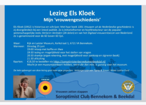 Koop je na de lezing van Els Kloek , historica en schrijfster, Vrouwengeschiedenis en het feminisme haar boek dan zal ze die voor je signeren. Boekhandel Novita uit Bennekom verkoopt de boeken.